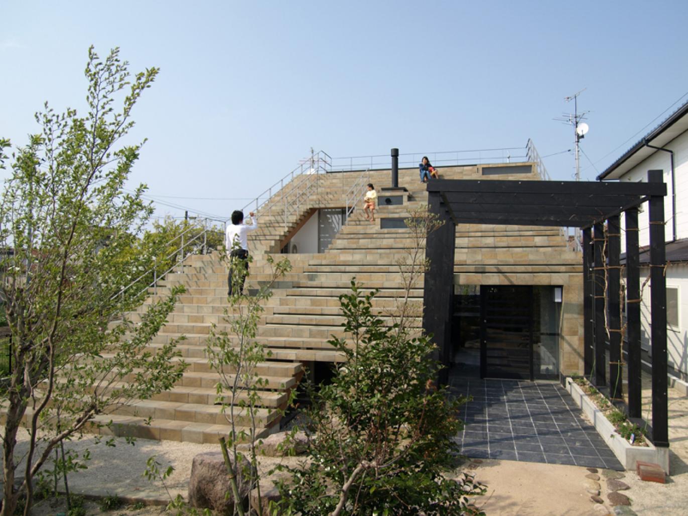 Taking into consideration the owner’s two key requests and the location of the land, we designed this “Stair-shaped House” as a solution.