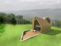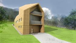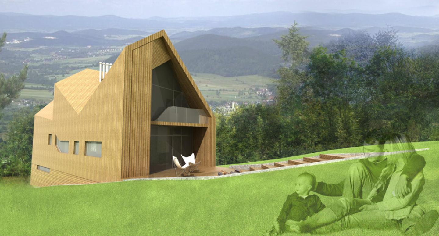This single family house is located in Sudety Mountains in Poland. The building takes a lot after traditional Sudety house: the proportions, the steep roof angle and the use of local materials. At the same time the design is very contemporary. The house consisting of three modules (square in plan) could be easily extended in future. Also the roof shape is very innovative. It lets the sunlight in during different times of the day. The roof ridge is skew, which gives the opportunity to arrange the attic space more efficiently. The inside of the house perfectly suits a modern family needs. Living and dining areas along with an office and a study room are located on the ground floor. Two large bedrooms with a walk-in wardrobe and a bathroom are located at the attic. There is also a basement car park with adjacent storage areas.