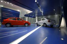The ‘hanging counters’ are the customer interfaces in the showroom, which are hung from the ceiling as the name indicates. These could be slid and rotated to a new position to maneuver the vehicles in the space.