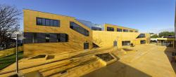 The intent was to create a building that would be its own public space, using raw yellow concrete.