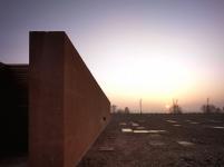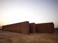 The red concrete walls also serve as basic structures for the design of the landscape. The building buries its roots deep into the ground, at the same time facing the land, the void as a possible façade.