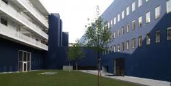 The halls of residence are typologically hybrid, with balcony access and dual exposure. The standard lodging comprises an entrance hall with a large window opening onto the access balcony, two bedrooms (18 sqm) and two bathrooms; a third bedroom (12 sqm), also with a bathroom, is situated towards the balcony and 80 cm higher to prevent passers-by from looking in. A second standard lodging has a communal area facing the balcony and at the same height, instead of the third bedroom.
