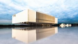 Such an architectural solution allows using the full height of the main building for concert and other halls.