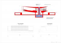 The concept of the Youth Center offered for consideration by the distinguished panel of judges is the main stand-alone console building of the Palace of Youth. . And at -4.000 around the perimeter of the main building, an additional amount of facilities supplementing the basic infrastructure of the Palace of Youth. The level of insolation of the lower level of the premises occurs through the clerestory. Also, natural lighting is enhanced by reflected sunlight from the screens of the basement , the main building at -4.000 wide slopes, with the correct angle of light and using white polymer concrete as the floor.