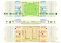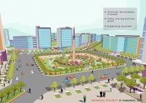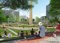 The central park with a monumental tower is designed as the focal point. It is sunken by 2 meters for physical isolation from vehicular movement and continuous visual vistas. Their combinations of shaded and open areas provide large spaces for social activities. The network of open spaces will not only cater to outdoor corporate events and shows, but also hold public cultural Indian events such as Kite festival, food festival, Navratri and local social events.