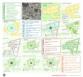 Shaded pedestrian network interconnects all quarters through green avenues and parks. The bus terminal (private + public) is centrally located with ideal pedestrian connectivity for efficient dispersal of traffic. The pedestrian avenues are aligned to create vistas of the central landmark tower.