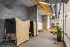 From user experience standpoint, architectural nuances such as ample storage spaces for mobile furniture, wide corridors for spill-out usable spaces, no-shoe zones for informal interaction, elevated platforms for focused work, writable wall surfaces, and acoustic windows foster spatial diversity at large.