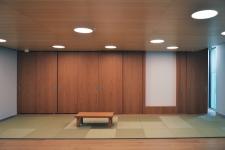 Wood finishes, open glass walls and green tatami-like carpeting join Japanese serenity with an Italian architectural sensibility.