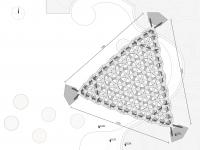 Each 3 manufactured elements were glued together into a 3-leg components. According to physical tests conducted by us, PVA D4 glue provided not only the strongest connection between elements (as strong as the fibre board itself), but also allowed for comfortable preassembly of components off-site. Later, all 121 components were connected together on-site into 4 fragments, using screws, and pulled on top of the crossed wooden beams, like a piece of fabric, where the final connections were realized. Such approach allows for elements to be separated later and reused to form various other designs and constellations.