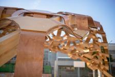 In the course of research work prior to the construction of the pavilion, special wooden-based biocomposite plates were developed.