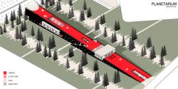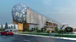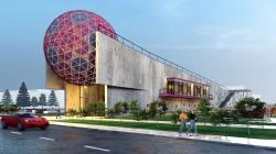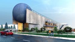 The function, positioned like a planet hanging in the air at the entrance of the building, is the Imax movie theater.Thanks to its spherical shape, this hall will have screenings that will allow to understand the stars and planet systems in space more realistically.