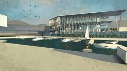 The building design highlights this connectivity through implementing a Horizontal bridge that extends from the land side to the water side.