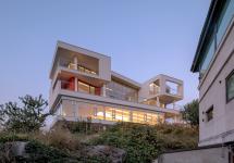 As the earth meets the river, the building also looks at the river. In order to solve the difference between the building direction considering the feng shui and the practical building direction, the panoramic view was taken up to the inside after superimposing the two directions. As you climb the hill, the inside of the house also climbs, making your privacy more intimate.