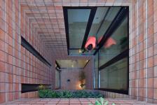 Traditional Brick was used both as the base and as the finishing of the exterior facades, the circulation corridors, as well as the voids throughout the building. Rotated brick blocks were implemented on some parts of the façade to allow sunlight penetration and view to the exterior, while minimizing overlook to the building. Sunlight variations during the day creates a variety of light and shadow patterns. The intention here was to emphasize on the importance of sunlight variations during different seasons of the year.