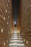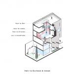 The narrow width of the site imposed restrictions on the interior planning. These restrictions motivated the design team to rethink the typology of the vertical circulation through the building and to rearrange it into a longitudinal semi-open staircase along one side of the building. This staircase connects the backyard to the open-to-sky void on the front side of the building, providing fresh air circulation in every floor. This space acts as a corridor, providing visual connection between the backyard, the sky, and the city.