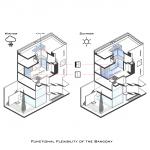 During the winter, this space becomes a part of the enclosed interior. During the summer, on the other hand, it could become a semi open balcony. This space is covered by an automated operable roof on top and is separated from the exterior and the interior of the building through operable glass openings.