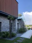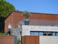 A spacious 45m2 terrace, boasting panoramic sea views, is situated above the lower box and designed for evening use. This terrace is conveniently located in front of the three rooms above, with access provided to guests either from the garden or an exterior staircase.