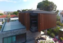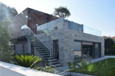 The building is positioned towards the southern part of the plot, with the primary terrace located to the north of the lower box. The clever cantilever of the upper box provides ample shade for the main terrace, ensuring comfort throughout the summer months. To enhance the sea view, the plot was elevated from the road in front.