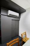 Clear glass used as partition helps to achieve continues space without dividing spaces visually.