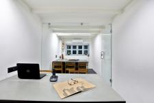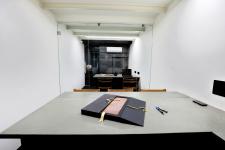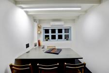 The project is a small linear office having two stories connected with a staircase at the very entrance. The double highted volume at the entrance gives hugeness to the space. Play of two different materials in staircase breaks its monotonousness and use of red china mosaic in flooring gives rich feelings while entering.
