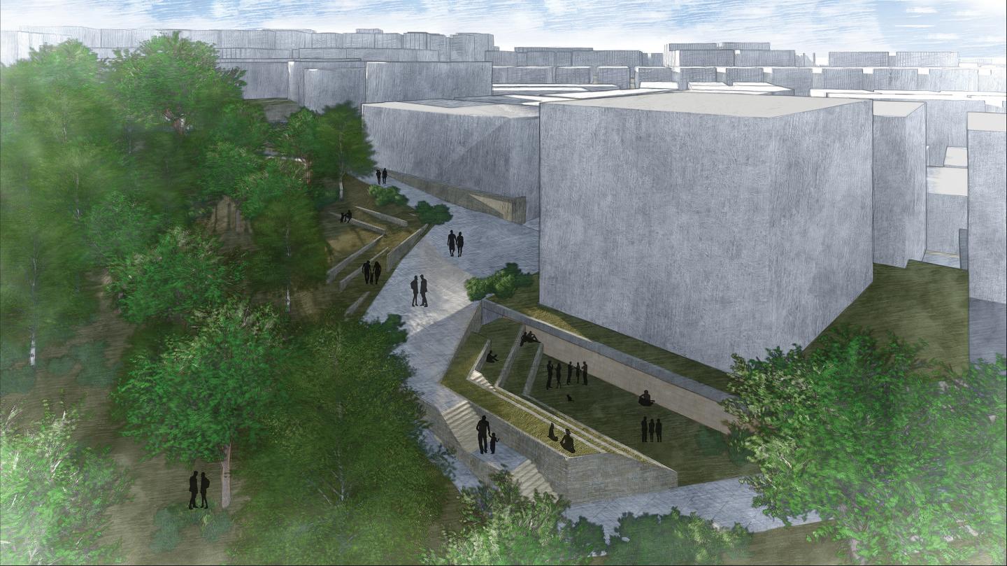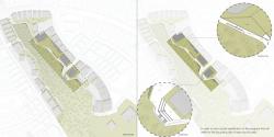 This design examined the land in terms of topography, building layout and the relations of these two. The green area and the boundary of this area are focused on in the context. After analyzing the conditions in the boundary of the whole park, the project tried to reconsider the relations in here and increase the spatial qualities of these relations by suggesting an intervention established with topography movements.