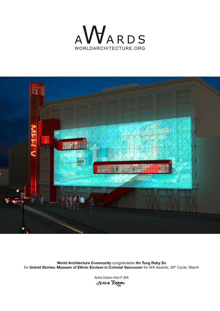 Untold Stories: Museum of Ethnic Enclave in Colonial Vancouver by Ho Tung Ruby So in Canada won the WA Award Cycle 30. Please find below the WA Award poster for this project.