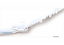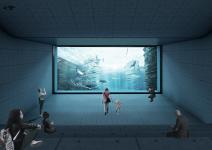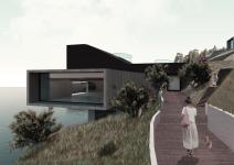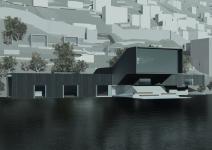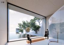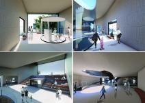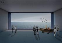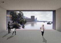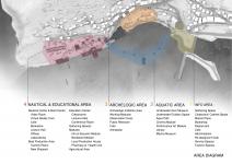 THE BUILDING: The “EYE”, located in the fourth area of the site, is a Nautical Exploration and Exhibition Center that brings together various functions and experiences. The building program consists of offices and administrative spaces, a bookstore, a café, exhibition spaces with special display cores, a multipurpose terraced gathering space, an underwater lecture hall, workshops and two laboratories, and an open air amphitheater declining to the sea. The main concept of the building is to create framed vistas. The form of the building is derived from this concept. The rectangular tubes, situated above the ground and submerged to the sea forming the building mass, are turned and twisted towards specified vistas. Each tube ends with large glass surfaces that provide framed views of the city, nature and the sea, both above and underwater. Glass cubes, protruding from the façade and the roof, form additional “eyes” that open to the sea, the topography and the sky. With its various “eyes” and framed views, the building recreates the experince of the “seğirdim” walkways of the fortifications, a pedestrian circulation route on the site interrupted by viewing points and framed vistas. The eyes, equipped with pausing points in front, encourage the visitors along their path within the building to stop, to look at and observe the nature and the historic site. The “EYE” provides an intense experience of the unique historical and spatial context.