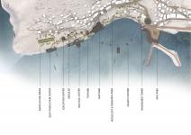 THE MASTER PLAN: Some keywords, inspired from the site and its history, guided the design, such as vistas, framing, “seğirdim yolları” – i.e. narrow walkways on the fortifications - and marine life. The site is divided into four areas of study and design: an information area, an aquatic area, an archaeological area and a nautical area. The information area welcomes the visitors. Routes of specific themes are designed within these areas and connect them to each other. In the archaeological area, the route starts from the Red Tower (a medieval Mediterranean defense structure from 13th century) and finishes at the Tophane (a medieval tower that protects the old city and the Arsenal). This land route is countered by an underwater route in the gulf, designed on the prototype of an interactive aquarium and it hosts exhibitions within the existing underwater ruins. “Eyes”, i.e. modules attached to the route and popping out like periscopes from the water, give controlled views to the historic site and the open sea. The two routes, providing different experiences, are connected to each other forming a cultural loop that highlights the site’s archaeological significance both of the land and the sea. This loop merges with the nearby nautical area creating together an urban social hub.