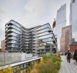 The 11-storey 520 West 28th houses 39 residences with 11-foot coffered ceilings, tailored interiors that incorporate Boffi kitchens by Zaha Hadid Design, and integrated technologies including automated valet parking and storage.