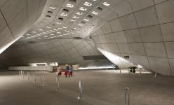 The centre is the first completely top-down/bottom-up tower construction in China - starting at street level and building upwards and downwards in tandem - constructed in only 34 months using ZHA’s expertise and experience in 3D digital BIM (Building Information Modelling) design and construction management to reduce the on-site programme by a year to only 18 months.