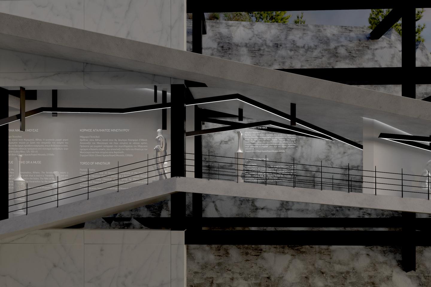 2. Its formation by two entities expresses its hybrid character: the exhibition of both physical and digital exhibits. This form also highlights the two great marble veins of the Mt. Penteli were all the quarries were created