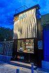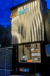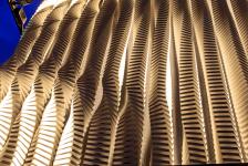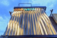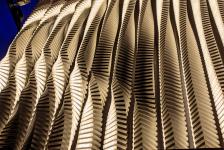 Designing a 2.9*3.9 meters' elevation of a fast food restaurant located beside a fast street that needs the attraction of passers was the challenge of this project. Being close to soffe mountain and the view to it makes the winds of mountain the source of concepts. For transforming this idea to architecture, a wavy shell designed that its structure is from 17 vertical elements with 73 polygon segments which is a form between the softness of circle and the sharpness of triangle. The next challenge was finding the way of manufacturing the turning elements and the main form of the shell. Because of wide different forms that could be occurred due to rotation rate of elements, an algorithm designed in grasshopper software to achieve the optimized form and then creating it in digital fabrication method. Digital fabrication is a series of processes that transform software sketches into material forms. The next challenge was the lightening technique of the façade to use each segment edge as a source of light. While turning of the vertical elements, light edges would be vanished and appeared in a wavy form that reminds the dynamism of mountain winds and also catch the eyes in night.
