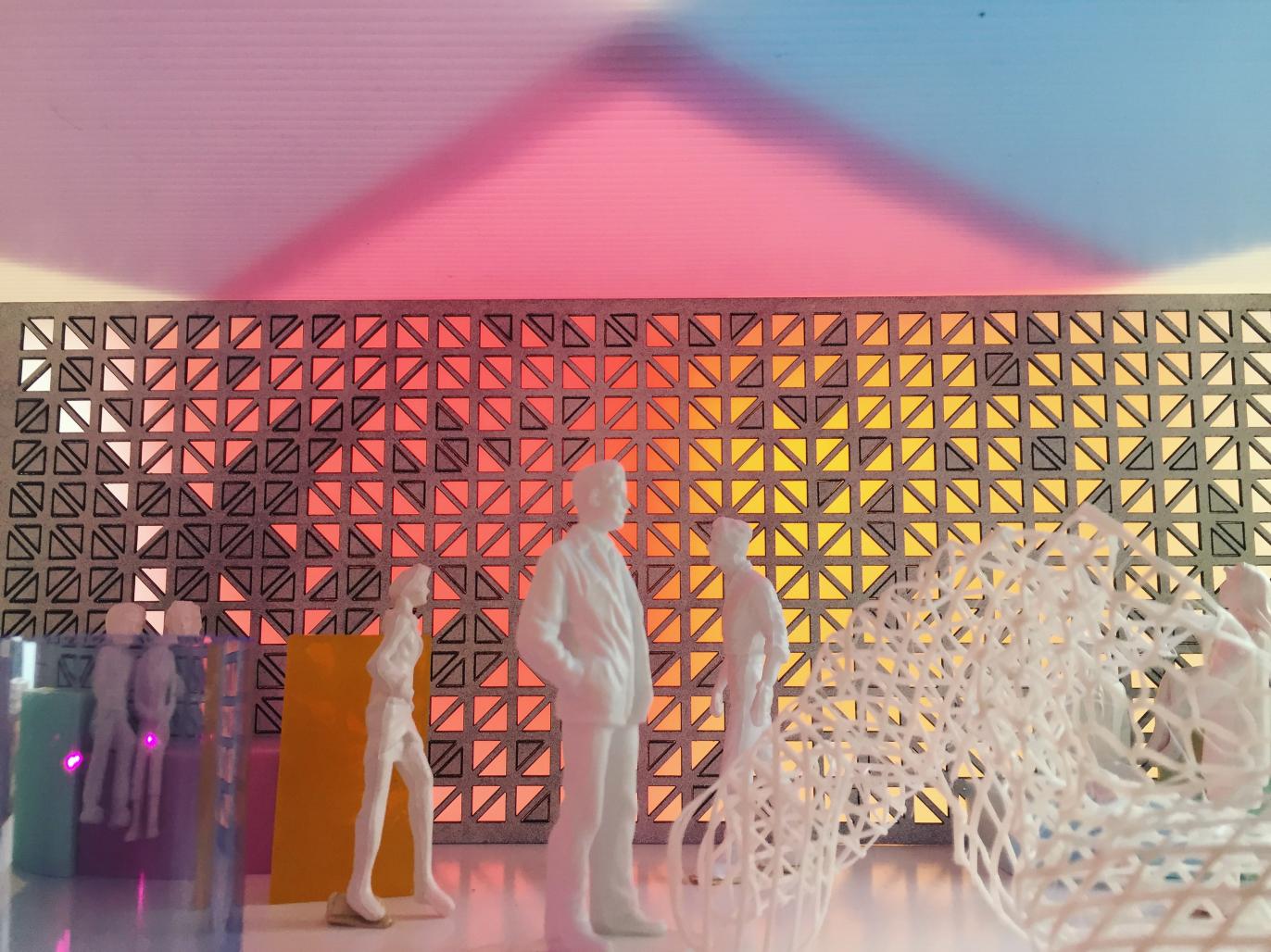 All model shots are as is, there was no use of photoshop or any other modifications. Light and projections were used to modify space.