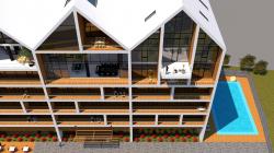 For the apartment project instead of a house which is used for more than 30 years as a family home, the idea of the house was chosen. The building is divided into 3 parts with a roof motion. On the left-hand side of these three-piece roofs, a detached house effect was created by opening the facade of down floor through glass facade.At the last floors of the building, each of the sections divided into 3 parts is designed to be different from each other and the wealth of the building is created through with different facades.