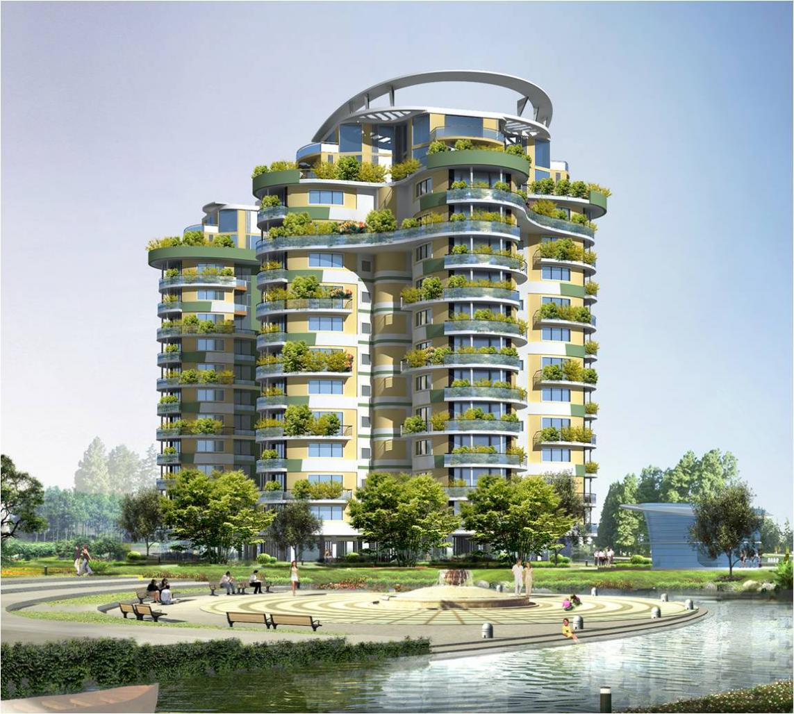 Standing stately and tall, the imposing towers have a dynamic, wrap around profile with lush green balconies and terraces.