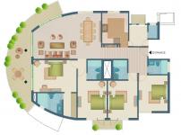 The Executive Suites can boast of sky terraces with outdoor Jacuzzi pools and a heavenly view from the poolside deck or simply laze in the sun on the deck chair. This suite is a four bedrooms, living – dining & kitchen unit with a servant room as well.