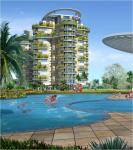 The imposing towers wrap-around profile with lush green balconies and terraces with manicured greens flowing around the built forms, forming a cohesive indoor-outdoor connect.