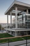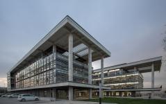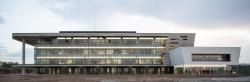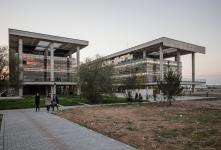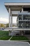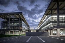 The lengths and arrangements of the blocks are designed according to requirements. The masses cascaded in the east-west direction to create a dynamic geometry when viewed from the campus area. One of the important reasons for the west/east orientation is to reduce energy consumption. The “concrete envelope” covering four glass masses was designed to block the sun in the west direction but they are open to the landscape in the east, to give the sense that float over the landscape.