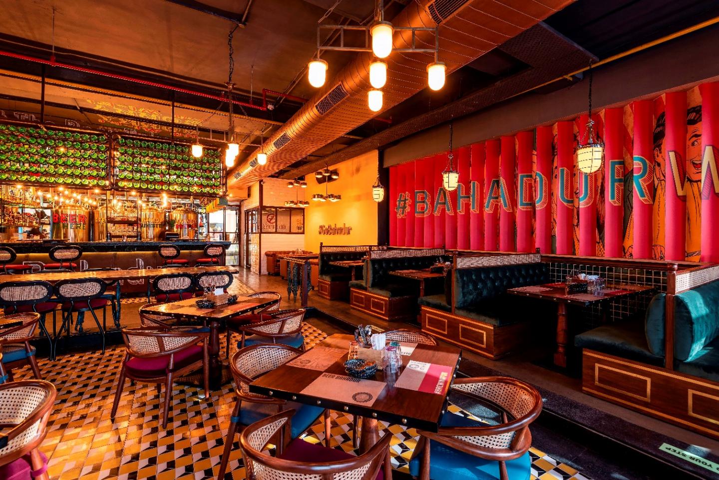 From the house of ‘Punjabi by Nature’ and dotted with vivacious ornamentations, Beer Bahadur located at the Ambiance Mall of Gurugram, serves as a fitting semblance to relish the enlivening tone of innovation executed. The original concept of the dinner was conceived to be family-centric with a muted environ but it underwent a ‘Midas’ touch’ and now poses for a dynamic setup with requisite quirk.
