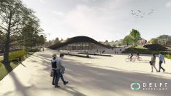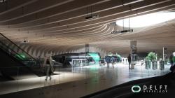 The station, designed by Francisco Muñoz-Correa, was intended to show a nearby future and how the Hyperloop will look like with all of it’s technologies. The wood shares an appreciation for sustainable design and plays a key role for the future in the eyes of our architect. Since the station will be mainly underground - as so would the airlocks and tubes at this point - there is a need for natural lighting and the light created in the station suggests a double function as it also becomes part of the landscape at ground level. At ground level, the station invites users to interact with the landscape designed to be harmoniously connected with public transportation such as trams and buses.