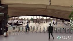 As the Pods arrive at a lower level (-2), passengers will de-board and be directed to the main area (cafe, stores, etc), meanwhile the Pods are taken to the departure level above (-1) by a lift -much like those used at modern-day underground parking lots- and then transferred (through automation) to a pre-designated platform. Each platform will have its own check-in and security system, allowing Pods to reach a 1 minute departure/arrival frequency. These dynamic passenger flows and pod flows are essential for the Hyperloop to be as effective as possible. Once the passenger is fastened to the seats, the pod moves to the airlock chambers where the surrounding air is depressurised (near vacuum) and the interior air is pressurised for a safe and comfortable environment during the journey. Multiple vacuum chambers would be available in order to grant flexibility at high peak hours of the users. With this system, passengers would have no need to wait in line for hours like at airports. The station would feel a bit more like a metro station than anything else.
