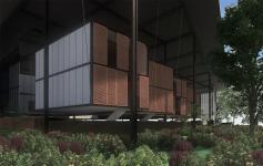 The goal of the project was to develop an architecture that could change people's perceptions of what a motel should look like. It uses a series of alternatives to structure the aggregation of the native flora, besides abandoning the use of a simple structure of beams and pillars, thus implanting a more alternative method of structure. Said that, it was expanded to the whole set and supported through a metal cover that encompasses the whole set, having a cover structure touching the ground. The distinct volumes facilitate the recognition of each room, creating the concept that each client has its own space. The roof rises steeply to fit the different typologies of the rooms, which can be with or without mezzanine; and with central openings that illuminate and enhance structures. We use sober materials that expose the beauty of the structure, without the use of coatings on its exterior. After ordering at an electronic ticket window, users follow the streets that line the central garden to their private garages, rotated to facilitate parking and to exalt the independence of the upper volume (where the rooms are located). The rooms are geared towards the visuals, having balconies and large glass plans that may or may not be covered by Corten steel furniture brises, according to the needs of the guest.