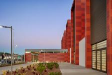 The design of the new Pavilion repeats these remarkable elements, using lateral gables and a single plan of cover, signaled by the front porticos of illumination and ventilation. These porticos mark the rhythm of the facade and define the striking image of the building. They also function as an indication of the accesses and meet an indication of the master plan that recommends that each building be highlighted by vertical elements of composition. Public access, as in Hardy's original design, is done by the highest level of the bleachers, allowing full reading of the internal space.