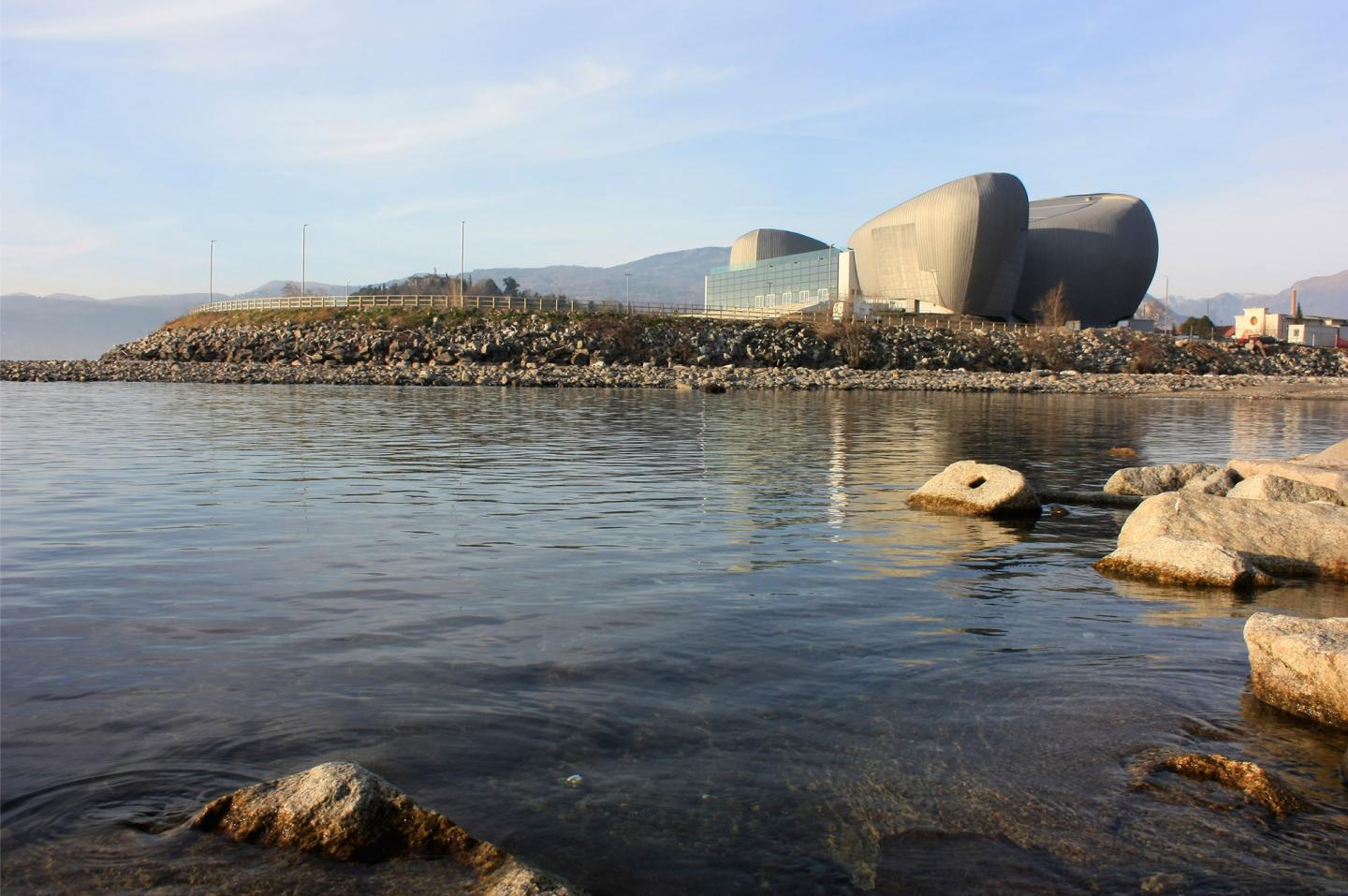 The lake stone is the main symbol of the project while the striking surrounding context is the concept inspiration of the Centre. Its architecture grows from the unique relation between mountains, city and lake.