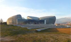 The lake stone is the main symbol of the project while the striking surrounding context is the concept inspiration of the Centre. Its architecture grows from the unique relation between mountains, city and lake.