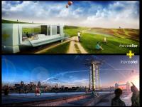 Traveotel is a hub in every major travel destination offering a variety of experiences.A network of traveotels has been created all across the globe. Each one is a terminal of the mobile rooms present in all major cities. It is a 120m tall building with 40 floors having a parking capacity of 250 units. The “plus” plan form points towards the geographical coordinates of that particular destination acting as an iconic compass for the entire city.The four exterior columns of the building act as bio wall screens that wraps as a horizontal garden throughout the building.