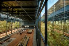 The primary design idea stems from the wish to integrate nature into architecture. Different spaces are organized in a sequential manner, while separated physically with horizontal inner garden strips, thus achieving ideal dimensions and clear divisions for different functions; visual continuity is maintained through transparency and the perception of depth increases.The atriums make sure that natural light reaches every corner within the building, blurring the distinction between inside and outside in a way. Nature is integrated into the daily life inside. The function of spaces changes gradually following the sequence; starting from entrance and waiting hall; it leads to an area where physical models of the project are exhibited and sales representatives are ready to give relevant information, allowing visitors to get an overall idea; finally it ends with the display of fully furnished sample apartment units that are built in true dimensions and materials. Service areas and circulation cores are gathered as one strip on the eastern façade, and administration offices are gathered as another strip on the western façade of the building, leaving center solely for the display of the project and inner gardens. Service areas, offices and sample apartment units continue to the first floor while the entrance hall and the model area achieve double height and visual relationship with the upper floor.