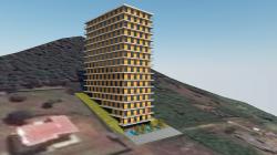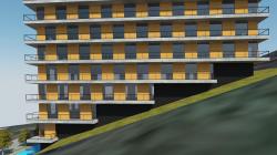The building will be built on top of the city.The structure on a sloping terrain is in an aesthetic relationship with the slope.