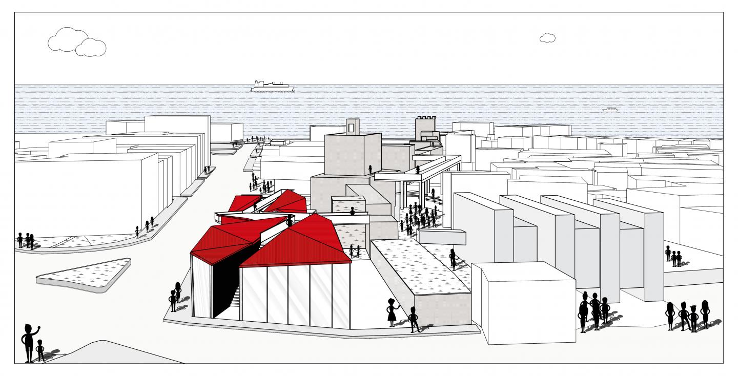 The city of ‘’Sinop’’ has developed with its own dynamics throughout the history related to ‘publicness’ and ‘historical’ background of the city are. In our project,rather than boundaries, tangible and intangible connections are constructed through the organization of ‘Sinopale’ which leads to collect memory and gathers people around the city walls that is the core of our design. The abandoned wall is gained a new identity by a ‘path’ on it ,leads people to experience multi-layered historical background of the city by walking on the path,offers several vistas towards the sea. Three main components, ‘city walls, people,sea’ are well connected in the architectural program contains some public spaces such as bridge, study units, workshops, cafe,multi-purpose hall for public usage and Non-Governmental organizations activities. The existing gap on the wall and a gap in between two masses provides a connection between the main square of the city and the backside of the wall. An inner street parallel to the path on the wall also forms an inner garden in the core of the building becomes a focal point in order to experience a space in between old and new architecture