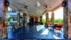 More of wooden furniture with lot of colour fabric On the cushions for making it look trendy and contemporary. Plan is very simple with lot of Indian traditional colors on walls and use of local raisen stone, flamed granite, flamed quartzite, is been done at various places. Lot of wood floor also gives it a tropical warm and cosy feel.